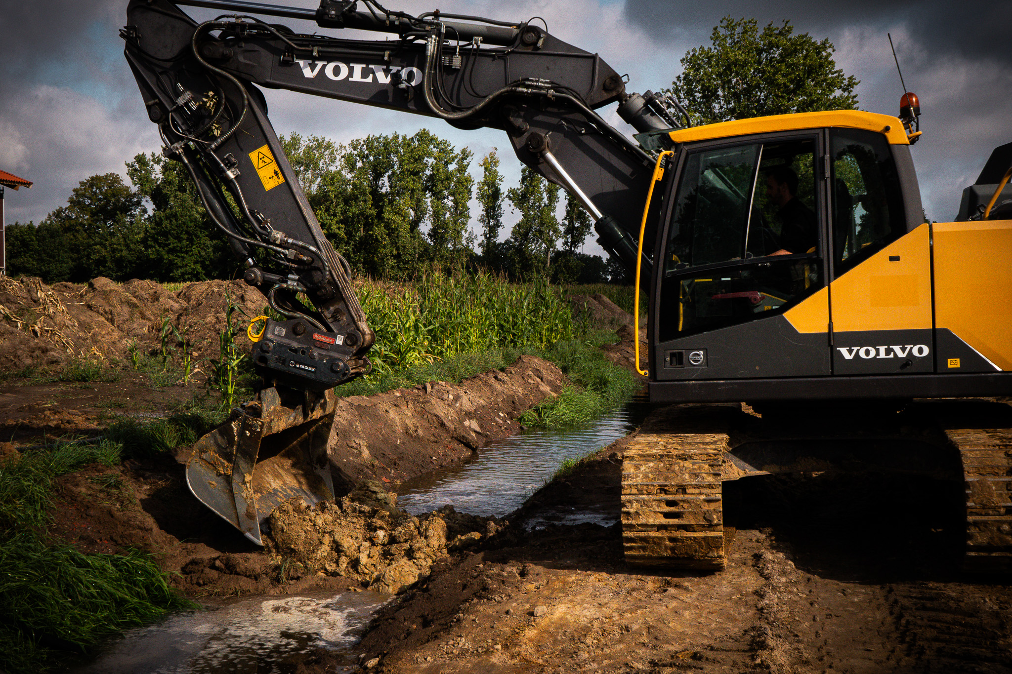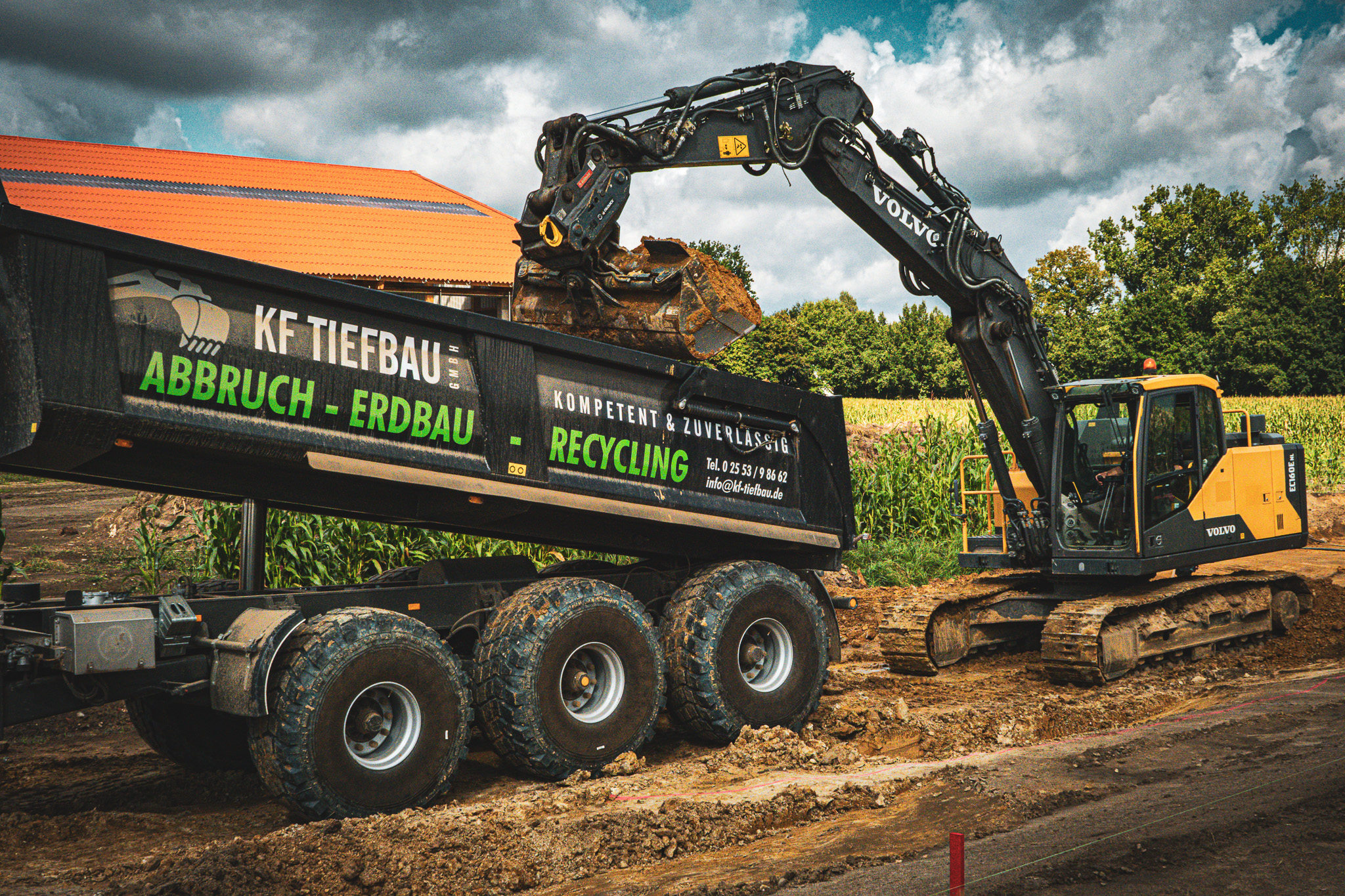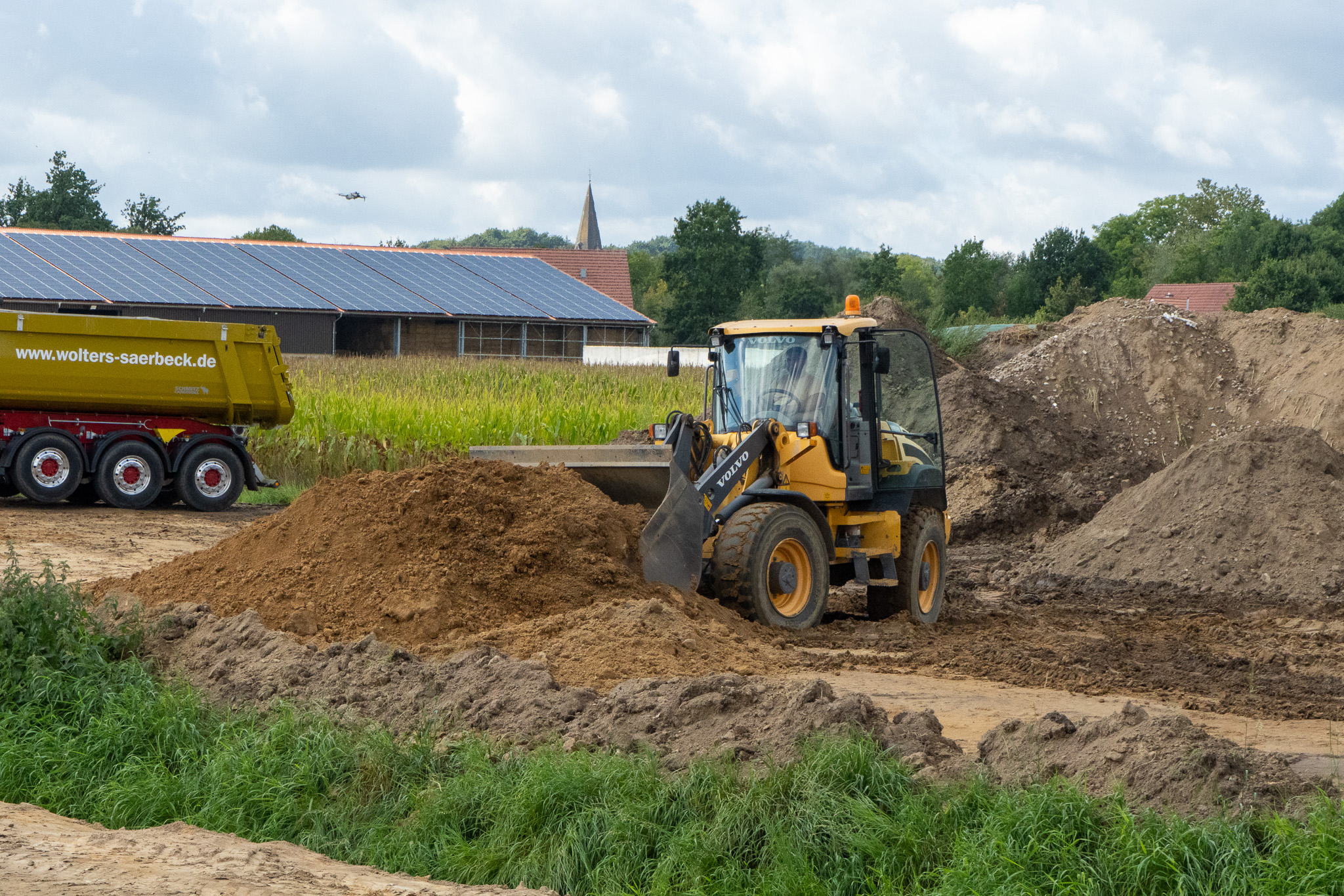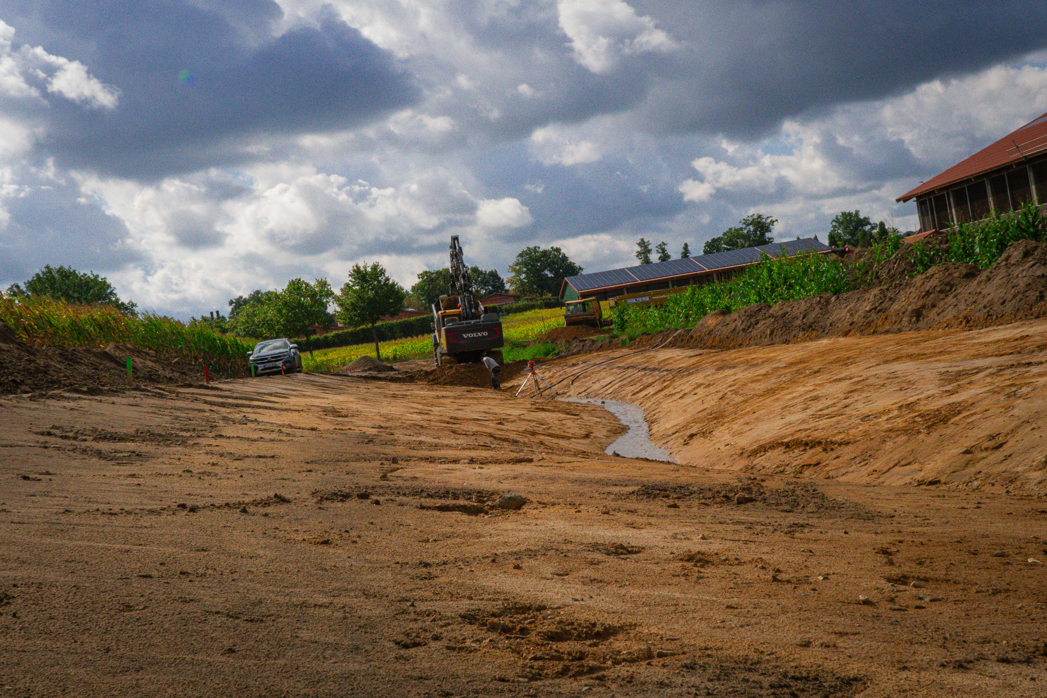 In Mettingen befand sich ein offener Entwässerungsgraben zur Ableitung von Regen- und Oberflächenwasser. Die Lage inmitten landwirtschaftlich genutzter Flächen machte eine sichere und kontrollierte Lösung notwendig, um zukünftige Nutzungskonzepte umzusetzen.